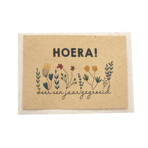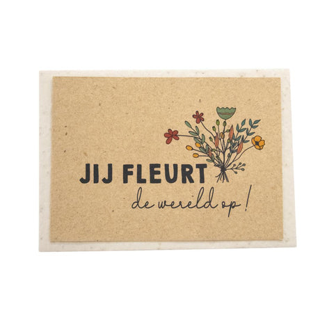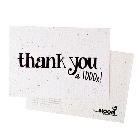 De wenskaarten van Bloom Your Message zijn gemaakt van bloeipapier, dit is duurzaam papier van gerecyclede oude kranten of katoen resten waar bloemen, groente of kruiden-zaadjes in verwerkt zijn. Wanneer de kaart in de aarde wordt gelegd groeien er fleurige bloemen of kruiden uit.