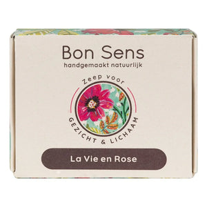 La Vie En Rose, een heerlijke overvette zeep vol rozen. Mango- en cacaoboter voor een extra voedende boost. Daarnaast zitten deze boters vol antioxidanten die huidveroudering tegen gaan.