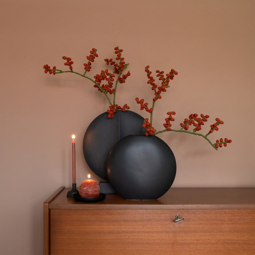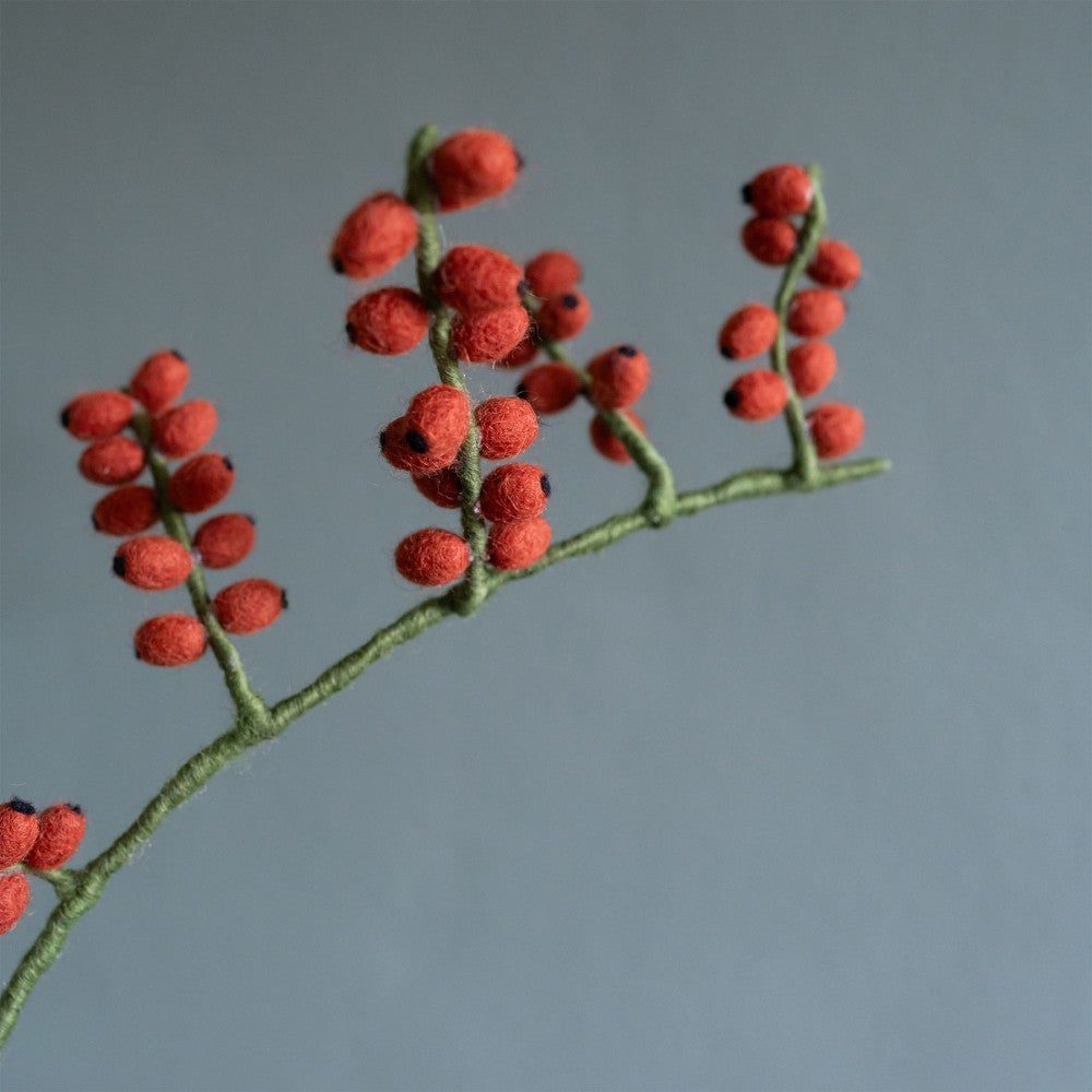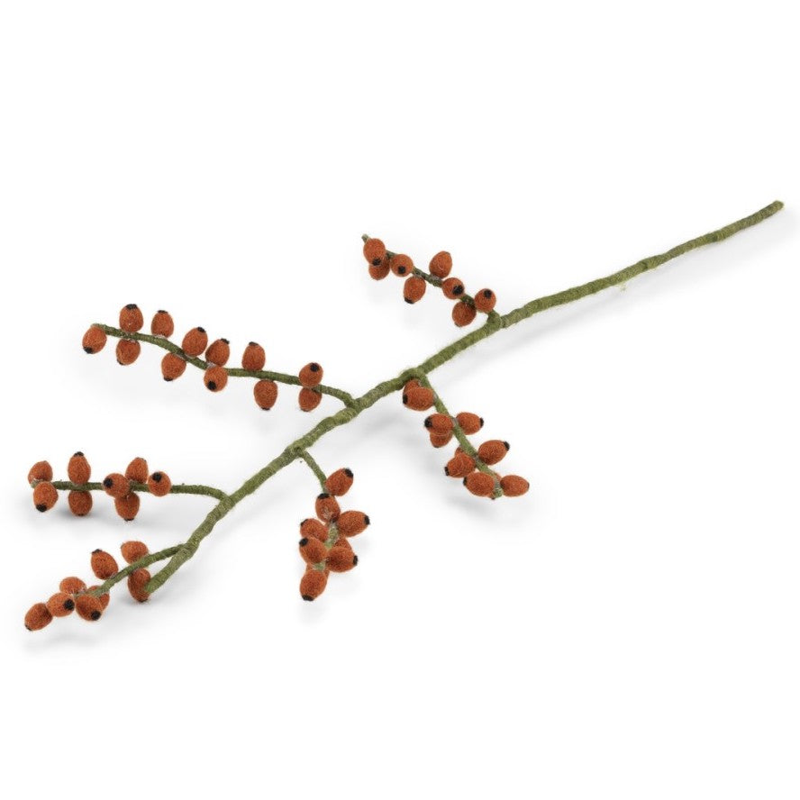 Tak bes rozenbottel gemaakt van vilt in een set van 5 stuks. In de stengel is metaaldraad verwerkt zodat de tak in vorm gebogen kan worden indien gewenst. Erg leuk in een vaas!