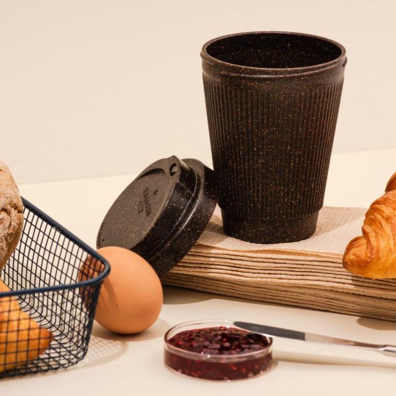 The new version of the iconic Weducer Cup features a new innovative material composition with recycled beech wood fibers - the ideal companion for enjoying your favorite drinks on the go.