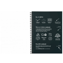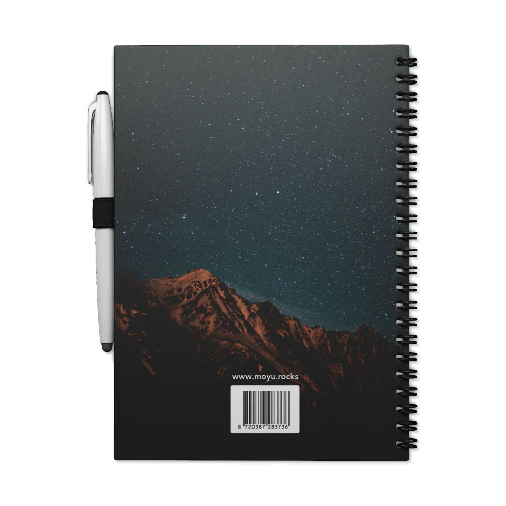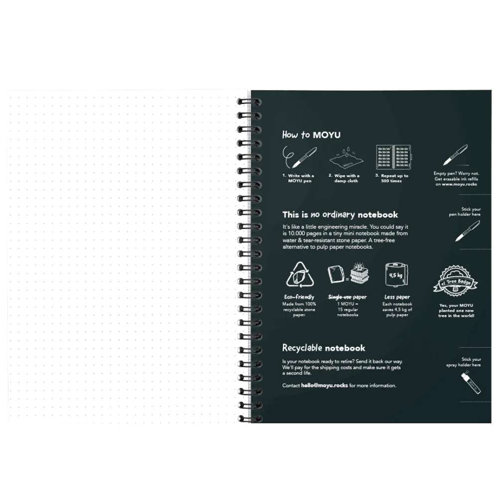 The notebook is made of sustainable stone paper. This paper is free from trees, water and nasty bleaching agents. Stone paper feels firm and smooth, which ensures a smooth writing experience.