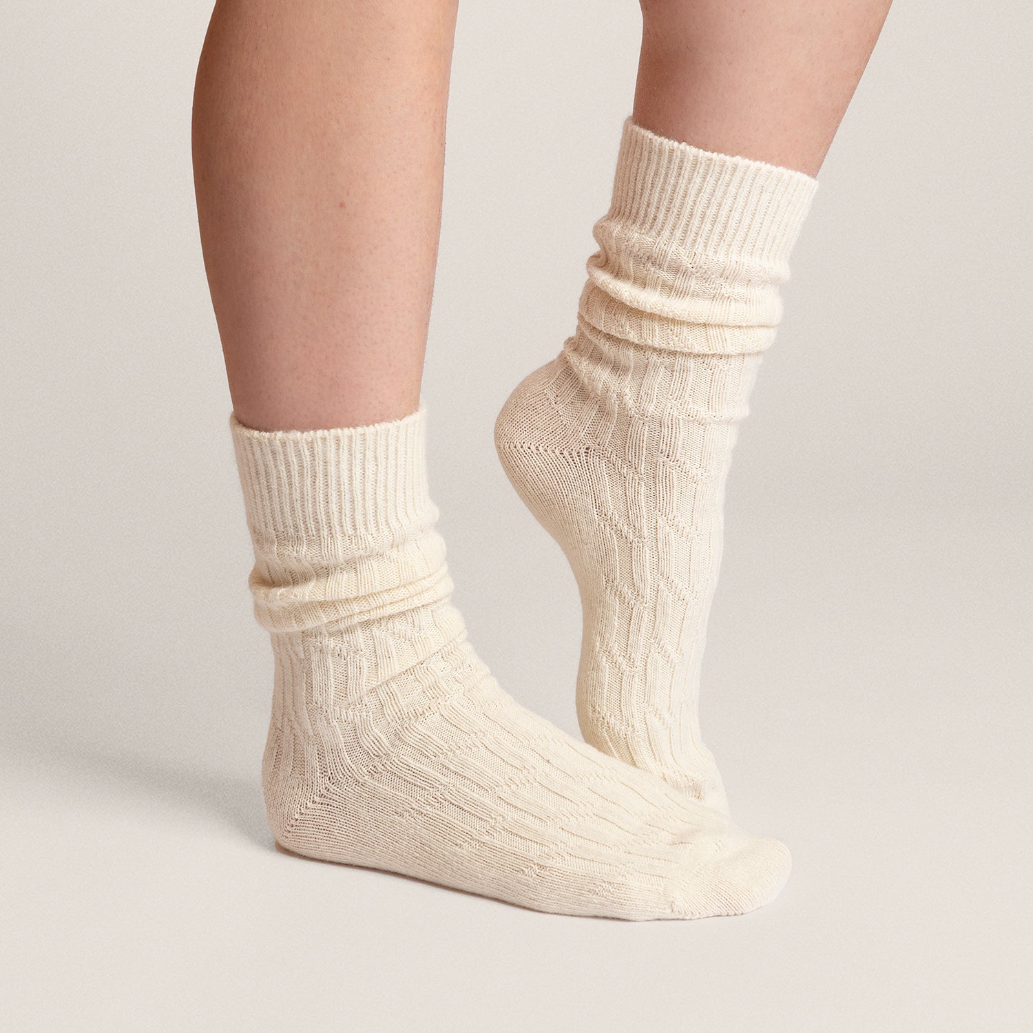 Kabelgebreide sokken, perfect voor de herfst, winter of om je voeten warm te houden thuis.