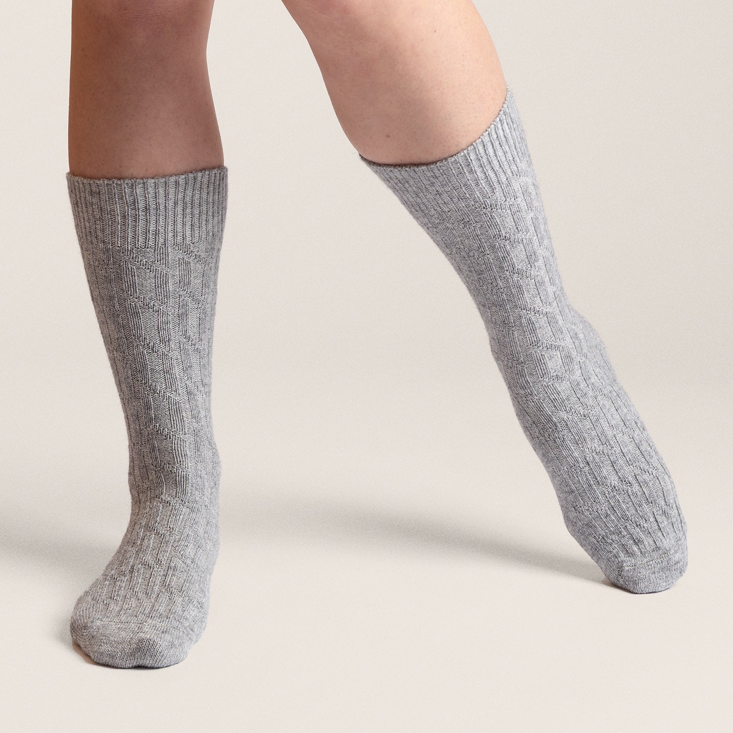 Kabelgebreide sokken, perfect voor de herfst, winter of om je voeten warm te houden thuis.