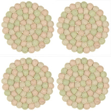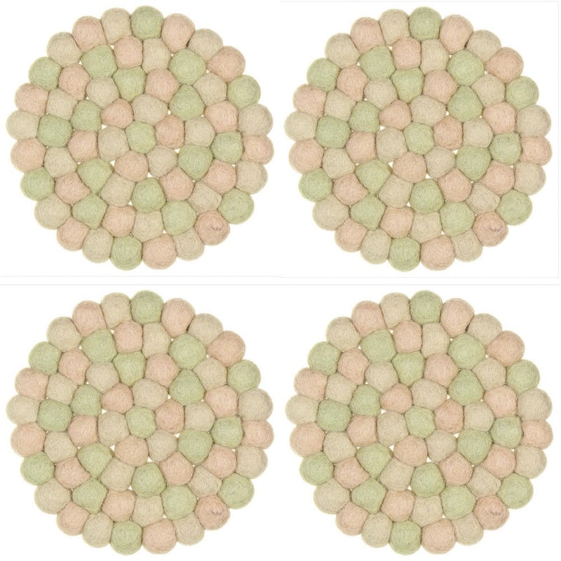 Deze onderzetter is gemaakt van verschillende kleuren vilten balletjes in de kleuren roze en groen. De doorsnede is 10 cm. Geschikt om glazen of bekers op te zetten. Met deze onderzetters maak je je (voorjaars)tafel helemaal af!