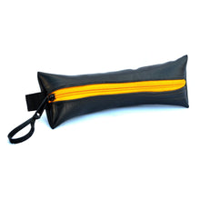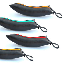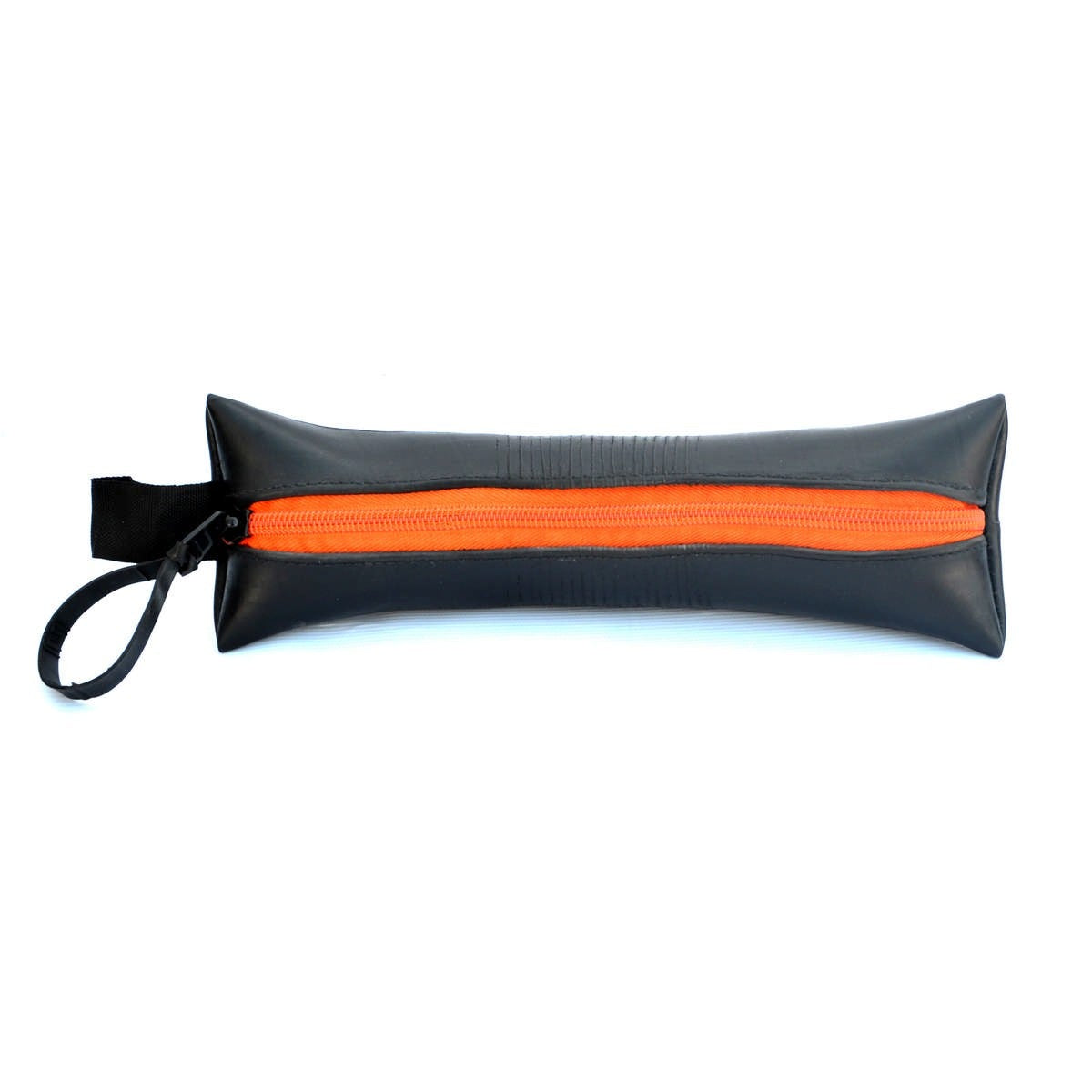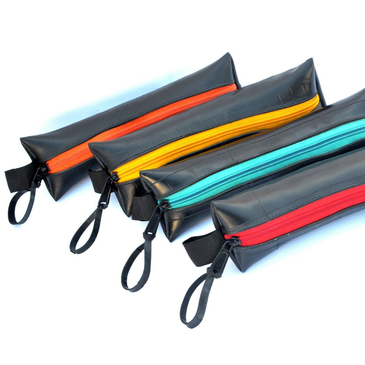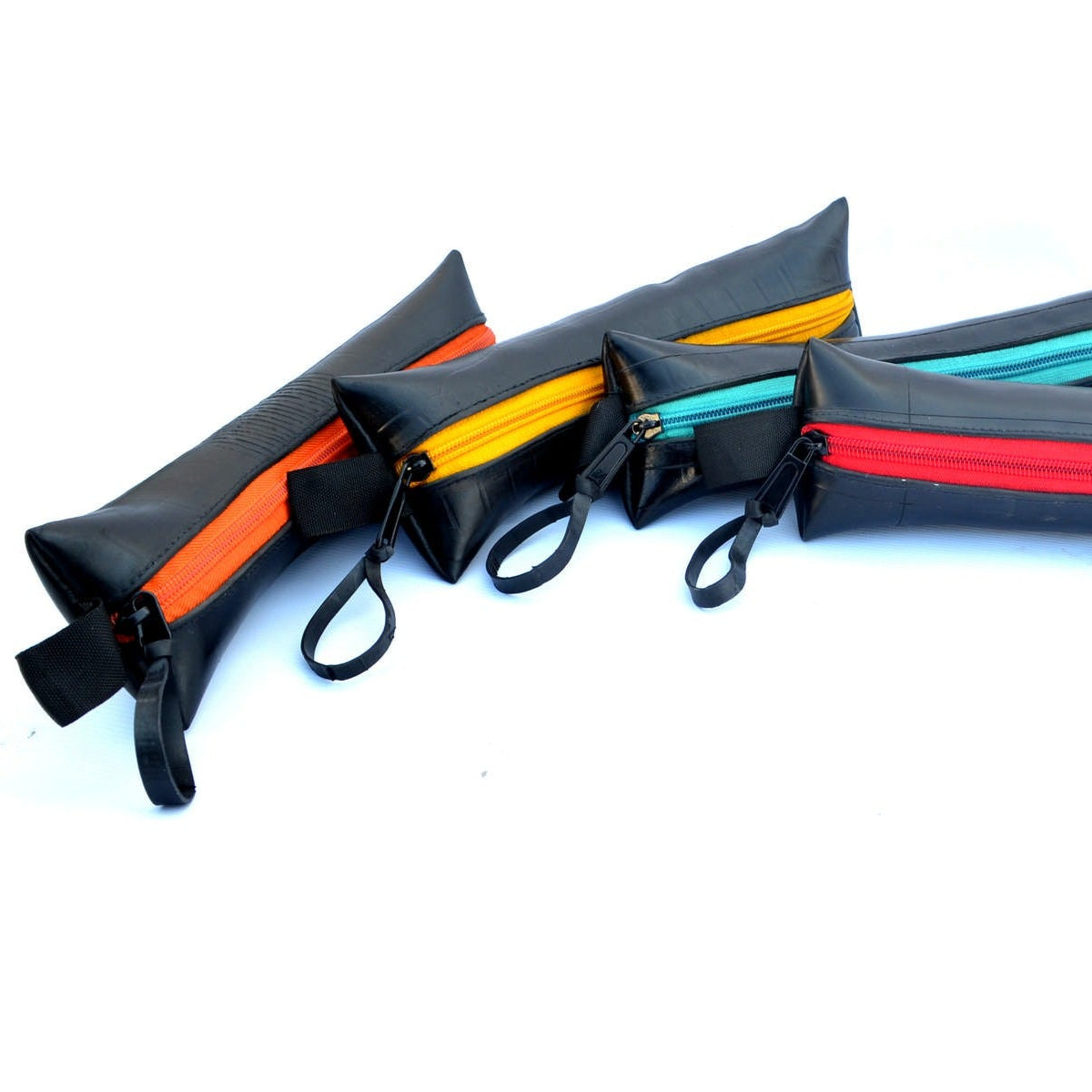 Bij het handgemaakte Boom Banana Etui van geupcyclede binnenband zie je in een oogopslag wat er allemaal inzit.