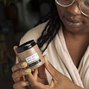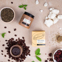Coffee scrub for oily and combination skin with rosemary, thyme, petitgrain and tea tree essential oils. Remove dry, dead skin cells for a soft, smooth and radiant feeling. Formulated with shea butter to nourish the skin after exfoliating.
