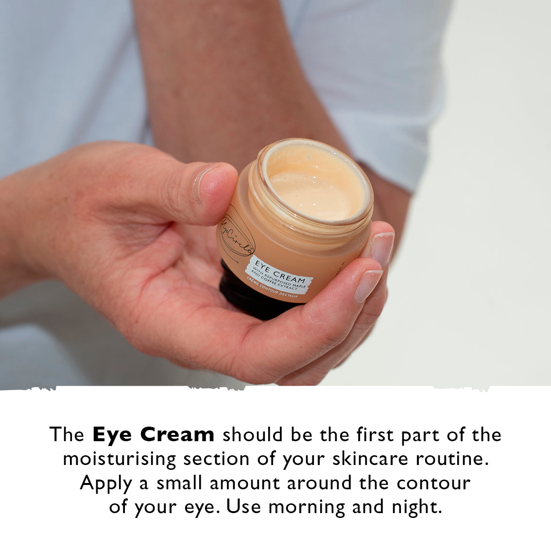 Geschikt voor alle huidtypes. Gebruik zowel 's morgens als' s avonds. De oogcrème kan het beste worden aangebracht vóór de moisturizer.