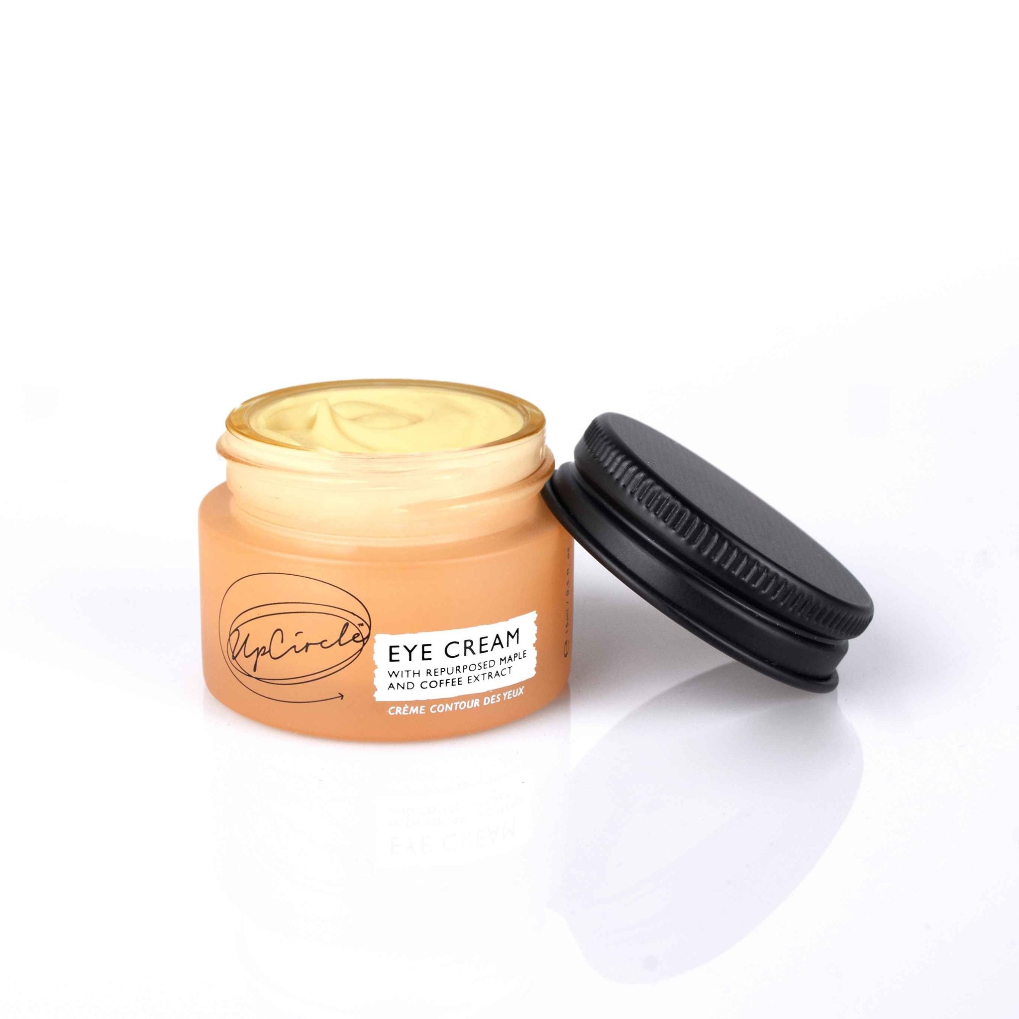 *De populaire oogcreme van UpCircle komt nu in een plasticvrij potje en bevat 15ml creme ipv 10ml, de formule van de creme is hetzelfde gebleven*