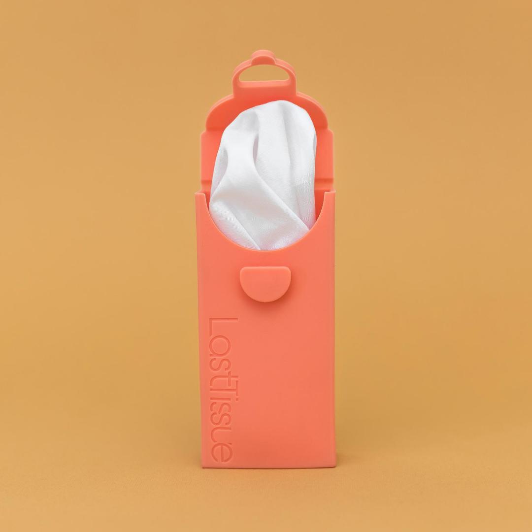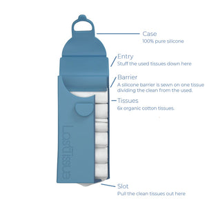 LastTissue bevat 6 biologisch katoenen zakdoekjes in een handig siliconen hoesje.