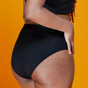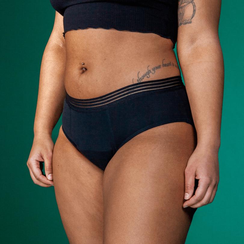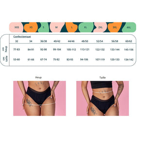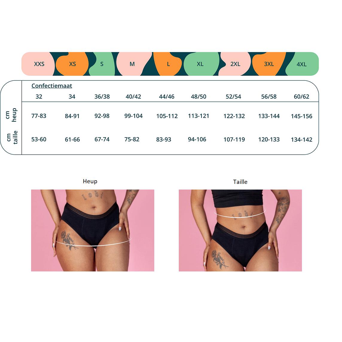 Mid-Waist - Dit model valt midden op de heup en is gemaakt van Lenzing Modal, een duurzame en zijde zachte stof. De slip neemt met gemak 30 ml vloeistof op, dit staat voor ongeveer 3 tampons. Het Mid-Waist model is daarom geschikt voor een heavy tot medium flow.