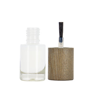 Het flesje van de nagellak is gemaakt van glas, de dop van FSC gecertificeerd hout en de binnenkant van gerecycled plastic.