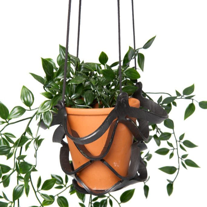 Ontdek onze unieke en robuuste plantenhanger, waar functionaliteit en duurzaamheid samenkomen in een prachtig ontwerp. Gemaakt van gerecyclede autobinnenbanden, straalt deze hanger karakter en milieubewustzijn uit.